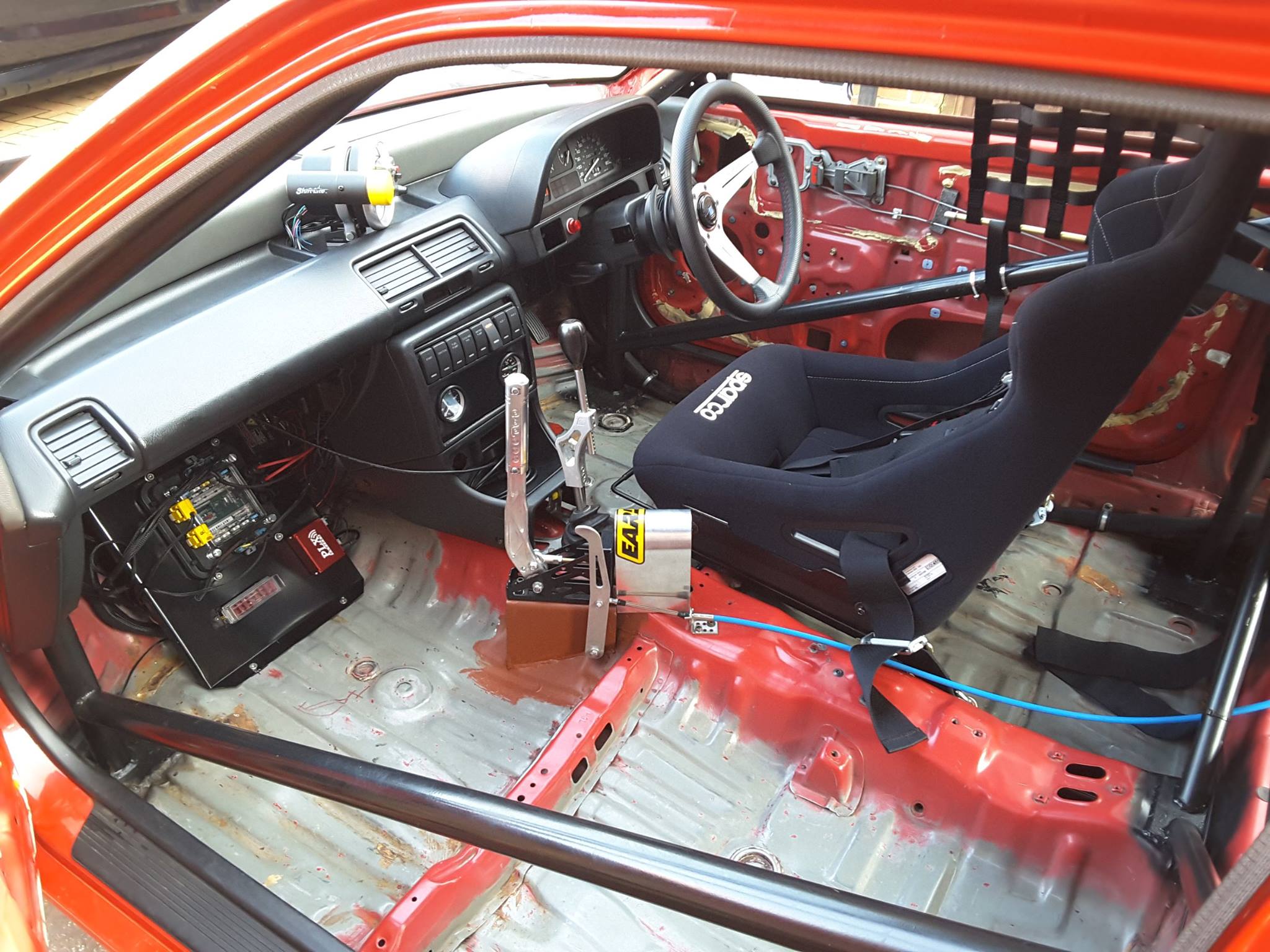 Interior of 1991 Honda set up for drag racing. This car is wired with the Infinitybox Express Drag Car Kit.
