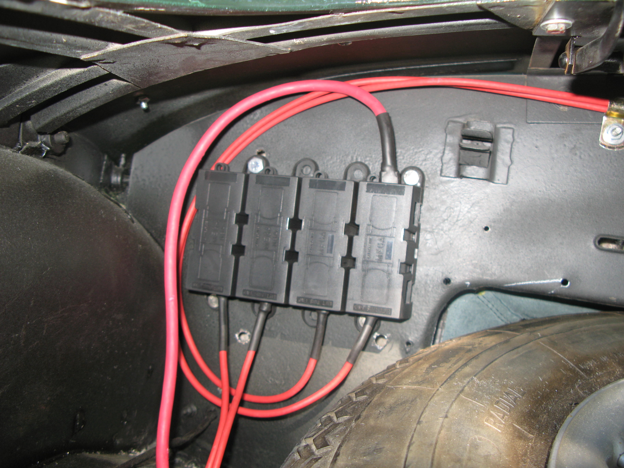 The rear POWERCELL is mounted in the trunk. This is powering the fuel pump, the turn signals, brake lights and parking lights. All of the wiring is short, clean and easy to troubleshoot. Here’s a picture of the rear POWERCELL.