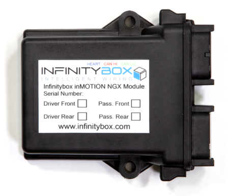 The inMOTION NGX Power Window and Lock Controller is the next generation of door control modules. It takes the power and flexibility of the standard inMOTION cell and delivers it in a smaller package that can be integrated directly into the doors of your car or truck. This dramatically reduces the number of wires you need to pass from through the door hinge back to the body of the vehicle. You simply need power, ground and two thin data wires. You would install 1 inMOTION NGX module in each of the doors of your car or truck.