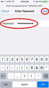 The configuration sheet that came with your inTOUCH NET will have a unique password that lets you connect your smart devices to the network. Type in this password. After you complete this, press Join in the upper right corner of the screen.