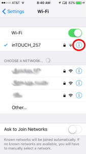 STEP 5: Hit the Information icon to the right of the inTOUCH NET Network Name