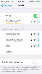 Wait until you see the inTOUCH NET network name appear at the top of the screen with a check mark next to it. It may take up to 30 seconds for this happen after you successfully enter your password.