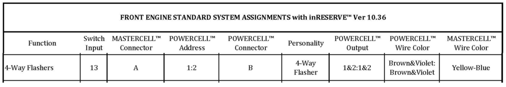 There is a configuration sheet specific to inMOTION NGX. This sheet details which input wires connect to your switches and which output wires connect to your loads. It also shows how the different inMOTION NGX modules interact with each other and the other parts of the Infinitybox IPM1 kit. You can download the standard configuration sheet by clicking this link.