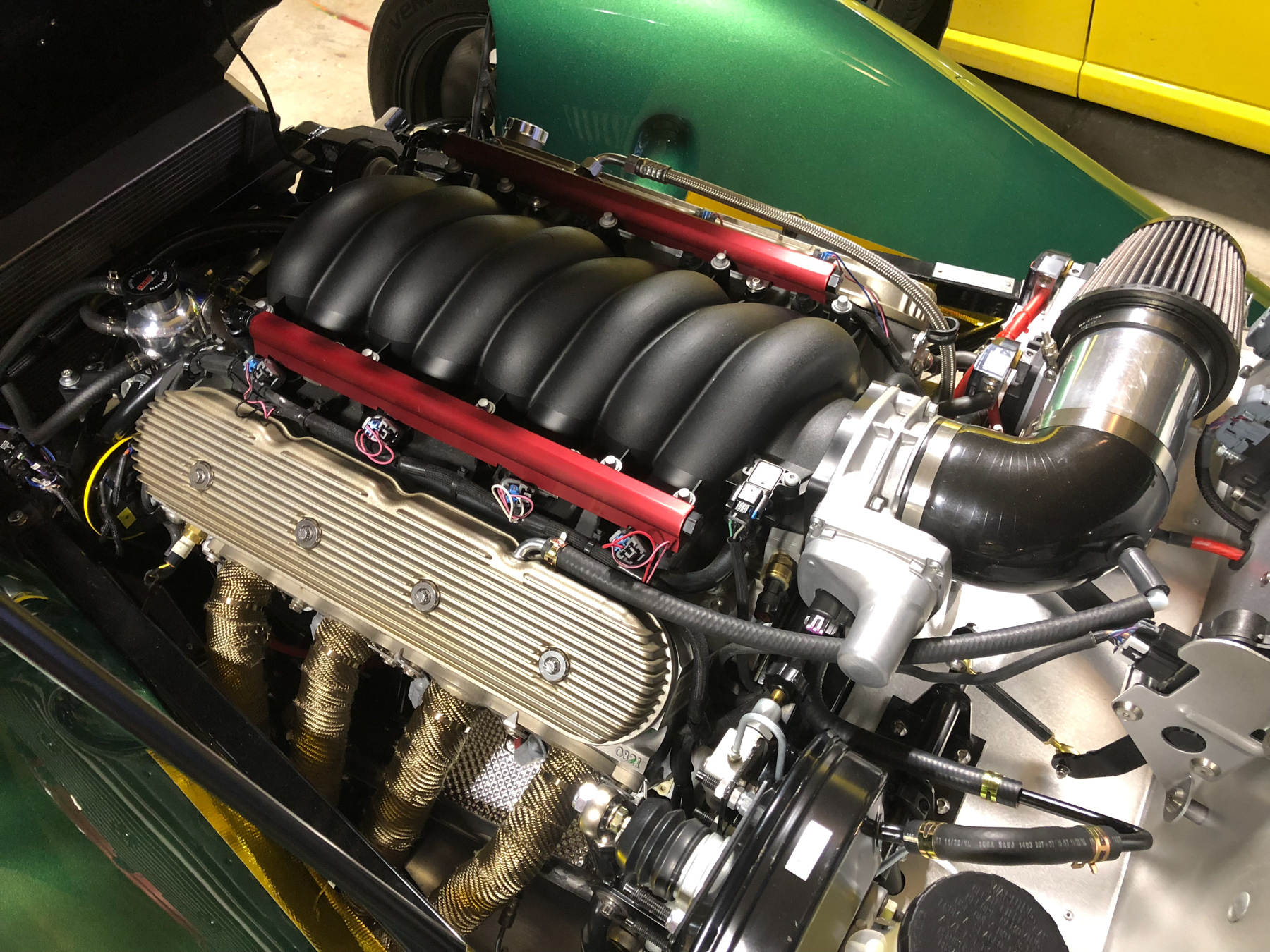 Before we get too technical, let’s talk about the car. This is another example of a very unique build and shows how simple yet powerful our Infinitybox system can be. Mike has been working on this car for a while. He squeezed a 430 hp GM LS3 engine into this chassis all managed by a custom Speartech engine wiring harness. Considering that the original Super 7’s came with engines the same size as those used in most garden tractors, this LS will make the car fly.