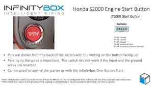 Image of wiring details for Honda S2000 Engine Start Button to work with the Infinitybox wiring system.
