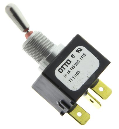 There are many different types of toggle switches. The major categories are sorted into the number of positions or throws of the switch and the number of poles or contacts. A single throw switch was two positions. These are designated as single throw or ST. A three position switch has two throws from the center position: one up and one down. These are designated as DT for double throw switches.