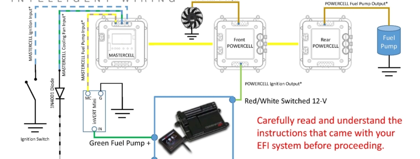 There is an important warning that must be followed when you wire MASTERCELL inputs to other controllers, like EFI systems. MASTERCELL inputs are designed to be connected to ground. This lets us keep the wire bundles small and simplify how you connect to switches. Applying 12-volts to a MASTERCELL input will damage the Cell and will void its warranty.
