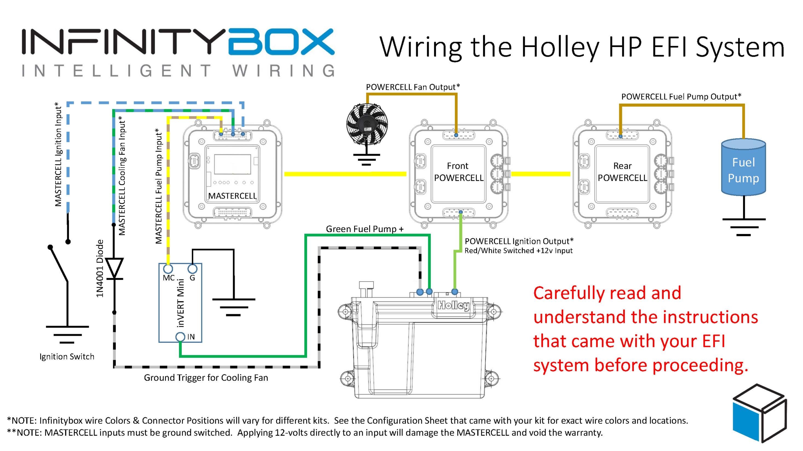Picture of wiring diagram showing how to wire Holley HP EFI system with the Infinitybox wiring system